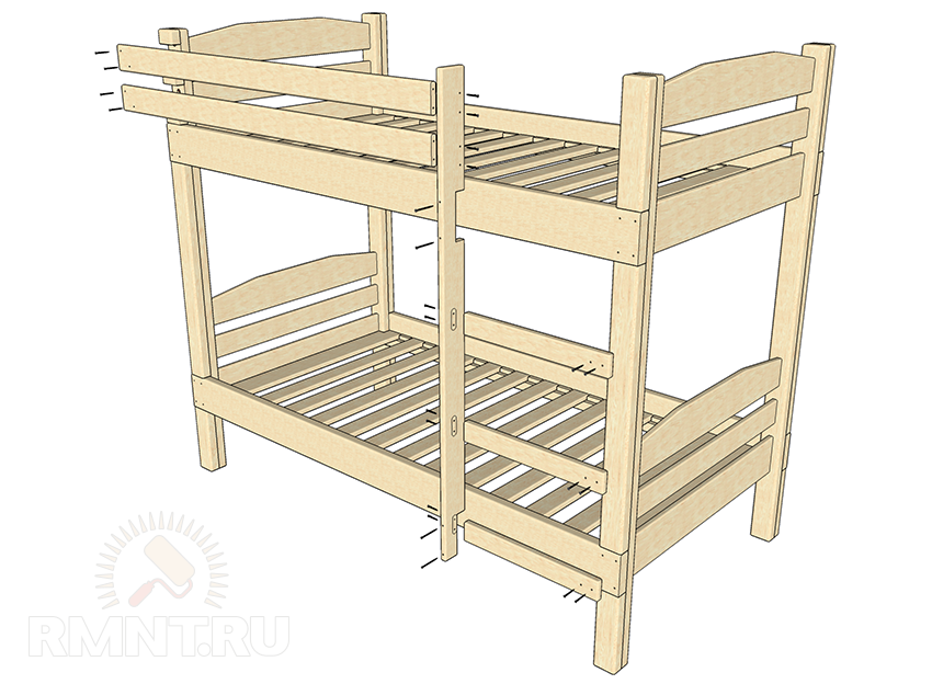 Конструкция ложа двухъярусной кровати для детей и взрослых