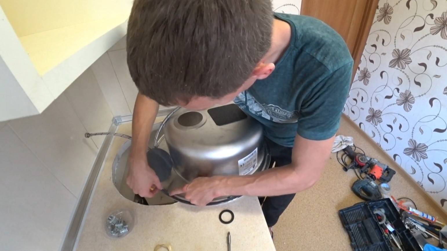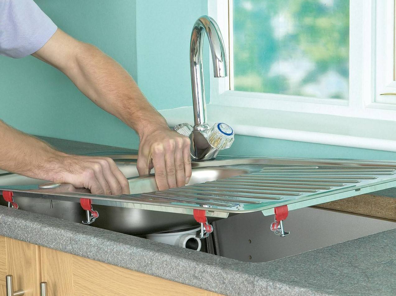Если где-то появляются излишки клея, нужно сразу убрать, пока он не засох. После останется только затянуть крепежные детали — и все, мойка почти готова.