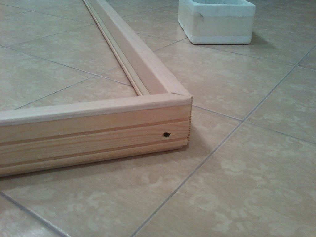 Следующий этап – отпиливаем приток по длине и запиливаем с обратной стороны (если имеет дело со стыковкой 45 градусов). Подбирайте такую длину притока, дабы в собранном виде интервал между опорами превышал ширину полотна. Минимум промежуток равен 7 миллиметрам, но часть его делают больше.