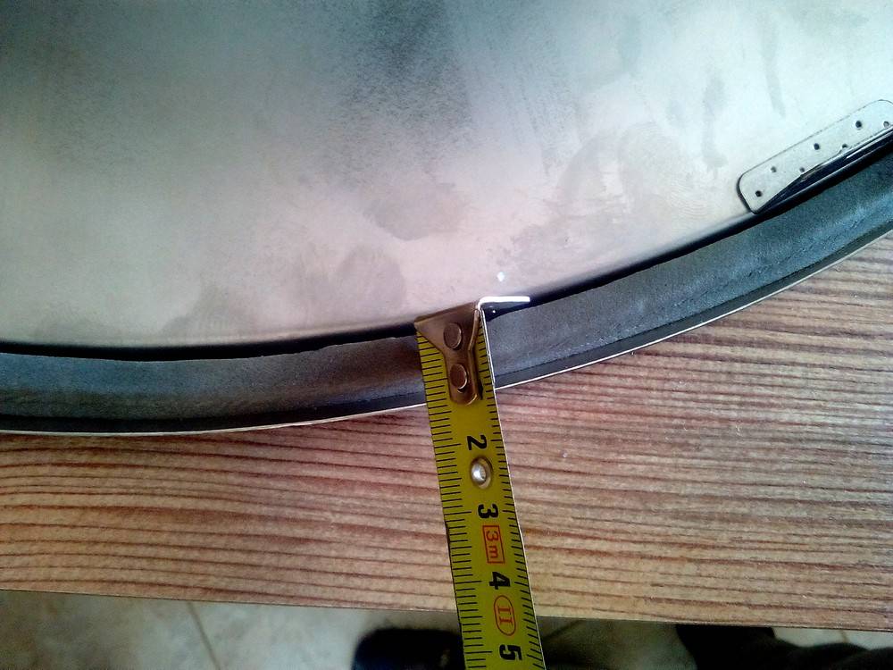 | Рис. 2. Замеряем размер бортика мойки, уплотнитель уже наклеен |