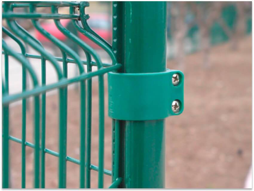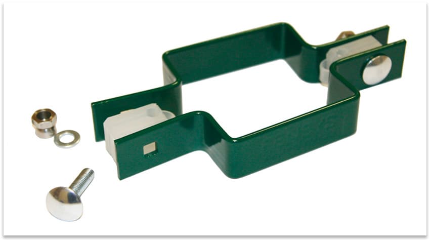 Пролеты из сварной сетки монтируют на обжимные хомуты для квадратной