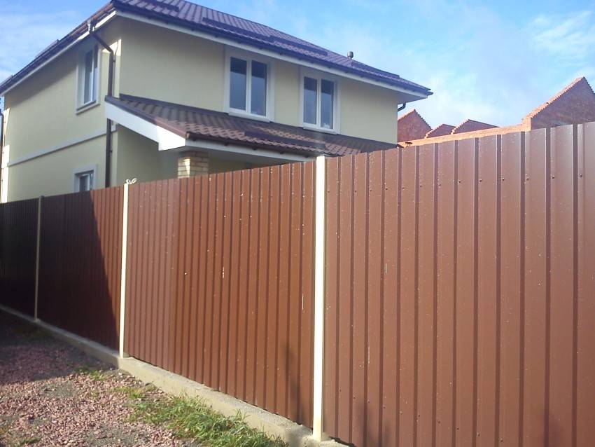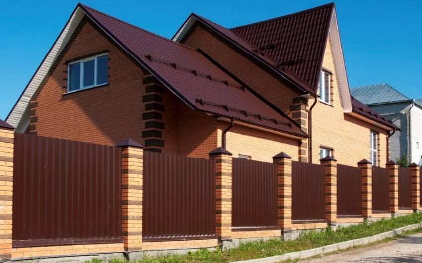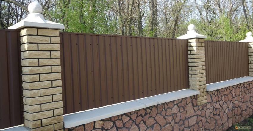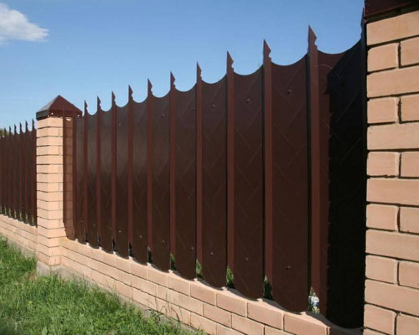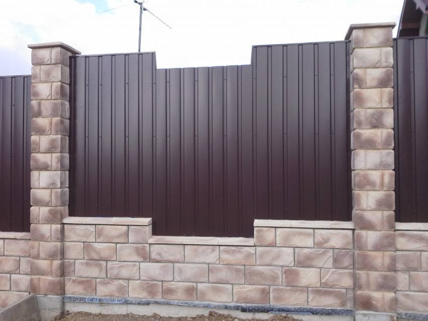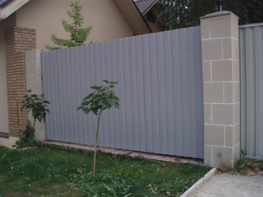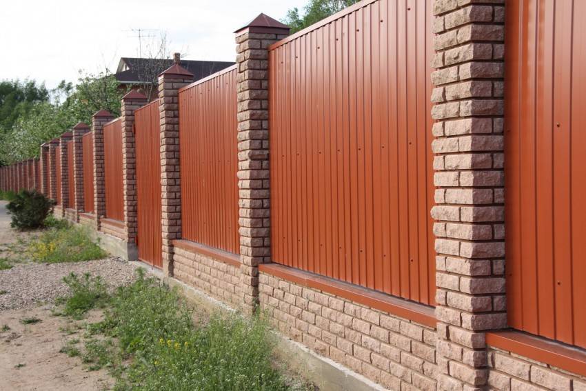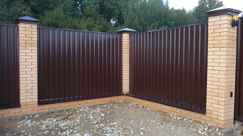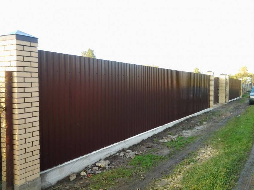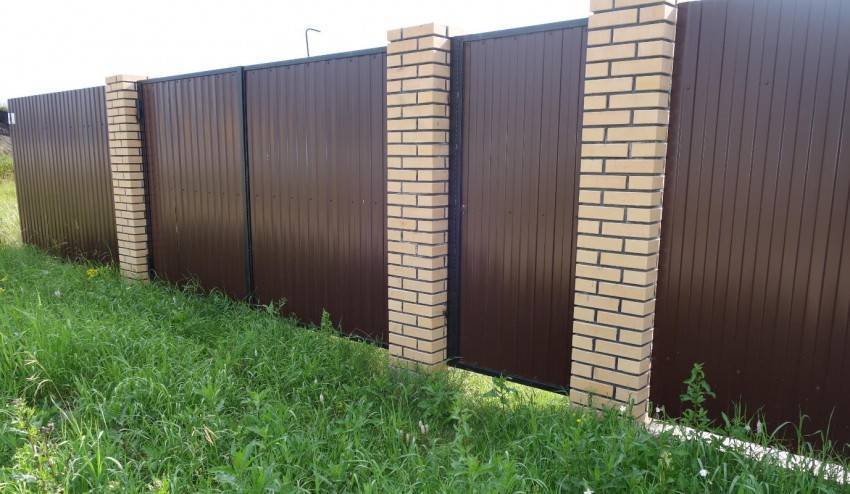 Расстояние между кирпичными столбами для профлиста может составлять 2,5 м, потому что имеется еще и фундамент.
