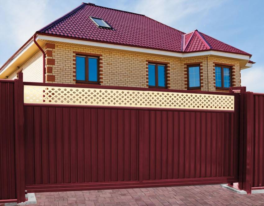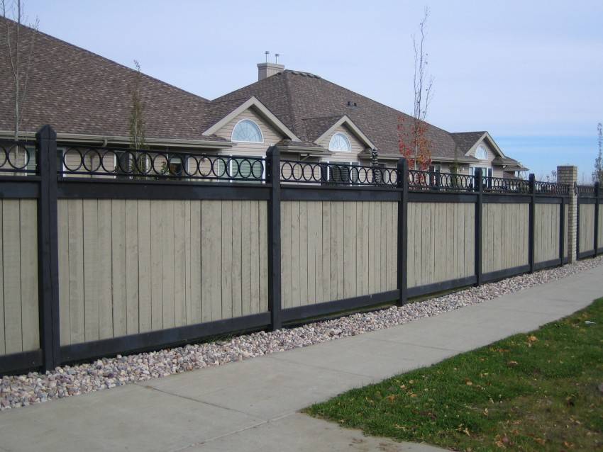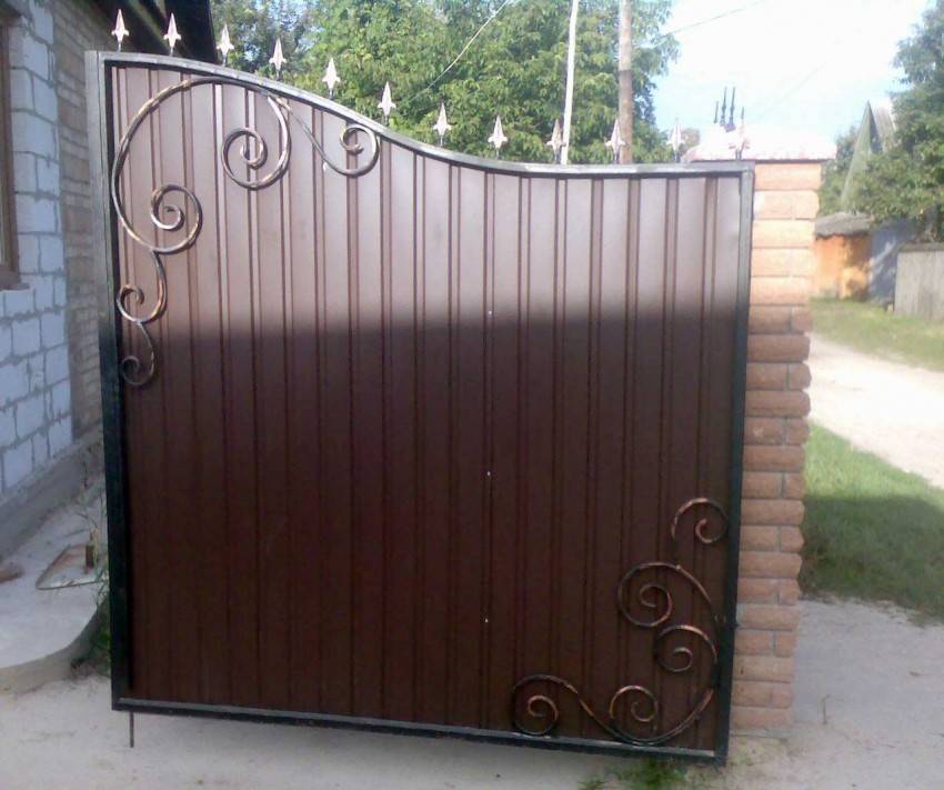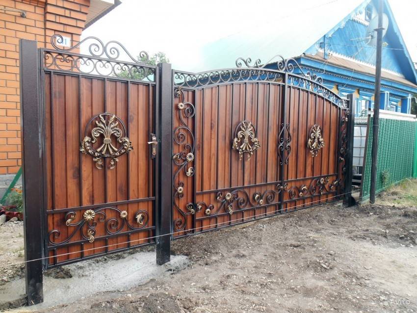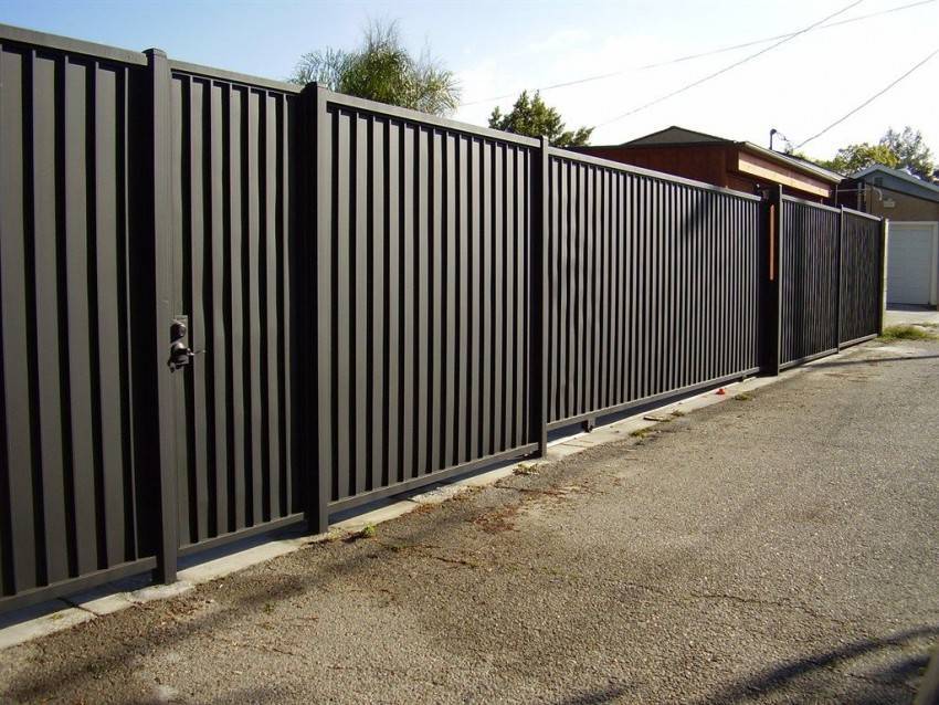 Но стальную панель с ковкой закрепляют на столбах с дистанцией от 2-2,8 м. Забор из профнастила не нуждается в усиленной опоре, поскольку он не обладает большим весом.