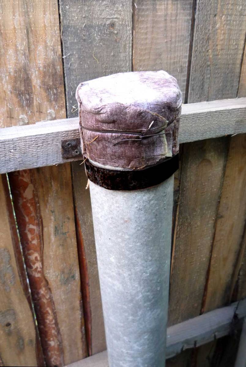 - 5) После высыхания олифы конец столба перекрывают горячим гудроном и заводят в трубу. Если остались зазоры, их тоже заполняют этим полимером.