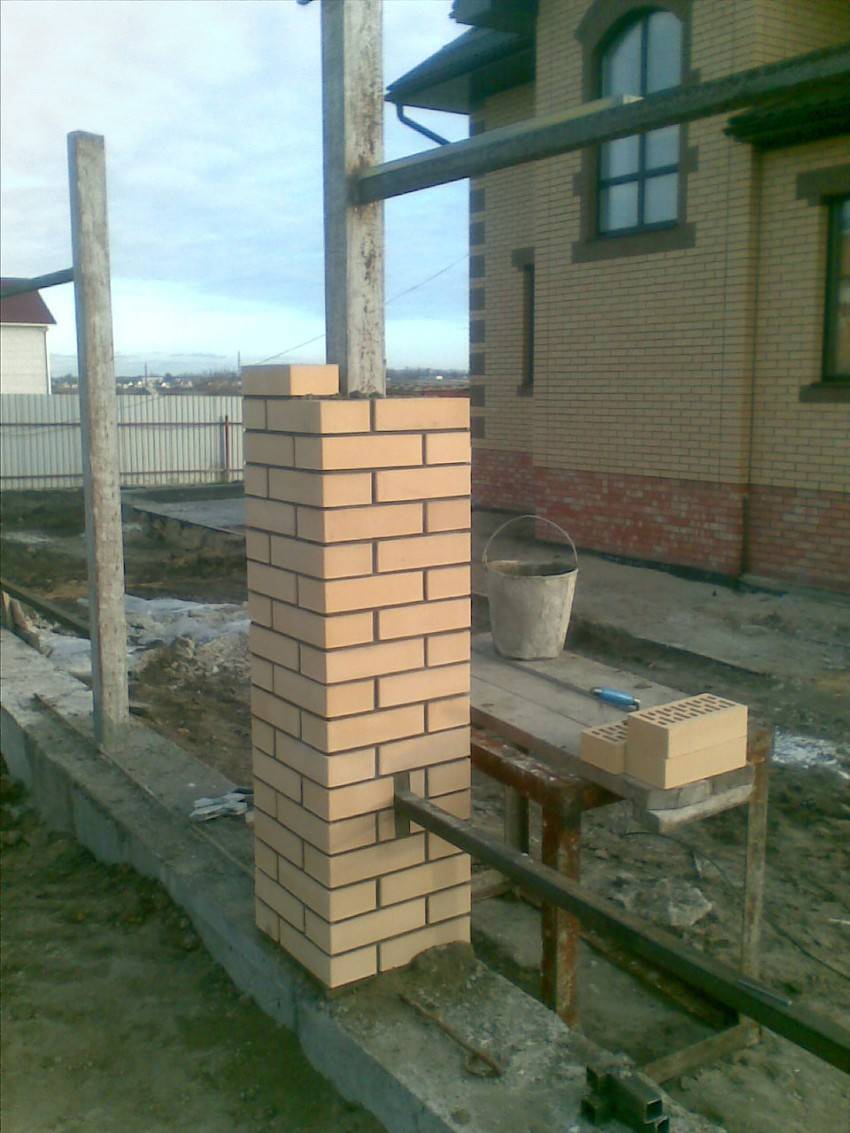 - Кирпичные. Такие опоры не теряют свою красоту и через десятилетия службы. Из-за большого веса, кирпичные столбы нуждаются в очень прочном фундаменте. Им также необходима перевязка. Малейшее несоблюдение технологии укладки может стать причиной потери забором эстетической привлекательности.