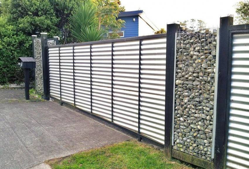 Кроме геометрической формы учитывается тип ограждения. Расстояние меняется в обратной пропорциональности, поскольку, чем массивнее и крупнее система, тем меньше должно быть расстояние между столбами. Для забора из профнастила или рабицы применяют дистанцию в 3 м.