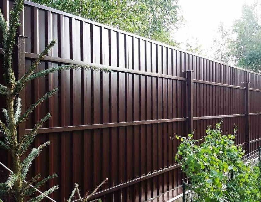 Ориентироваться на необходимое расстояние можно даже по стандартным параметрам профлиста для забора, который не превышает 2,5 м, даже при учете дополнительного припуска.