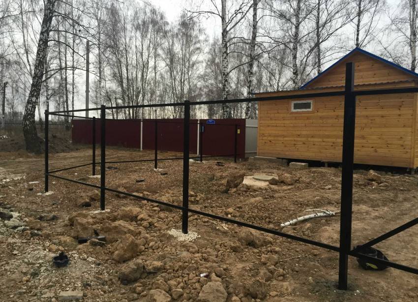 Установка труб из металла при монтаже изгороди предполагает уменьшение шага, даже при условии дополнительного крепления лагами.