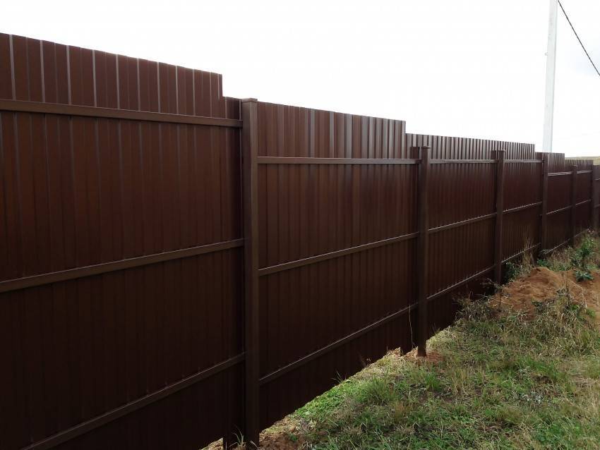 Высота забора является одним из ключевых параметров, которые необходимо учитывать при выборе столбиков. Если вы собираетесь использовать в качестве полотна металлопрофильный лист высотой 2 м, то вам потребуются столбики высотой не менее 3 метров. Закапывать их придется не на 1 метр, а примерно на 1,2−1,3 м. Если верхний край забора получится ниже или выше уровня его верхнего края, то это не будет считаться грубым нарушением.