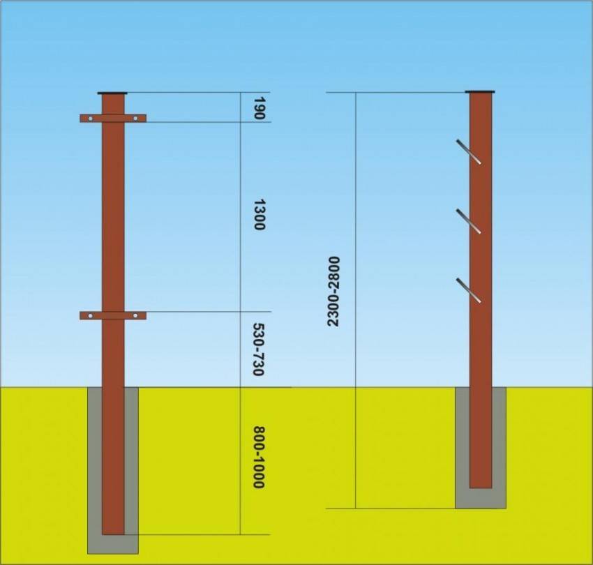 Выбрав оптимальное расстояние и другие характеристики столбов, можно переходить к подсчету количества требуемых материалов.