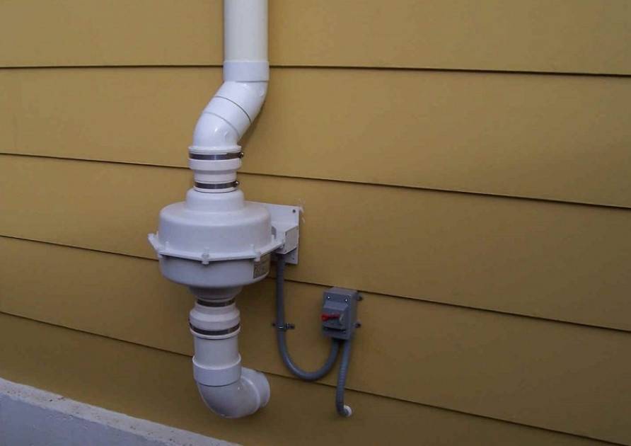 - Вытяжная труба должна быть выведена на уровень, который находится выше, чем конек крыши. Желательно, чтобы она была двойной. Если имеется чердак и она проходит через него, то в месте прохода стоит ее утеплить. Чем на более высоком уровне будет находиться вытяжка, тем более эффективным будет процесс. Самыми приемлемыми материалами является пластик и ПВХ.