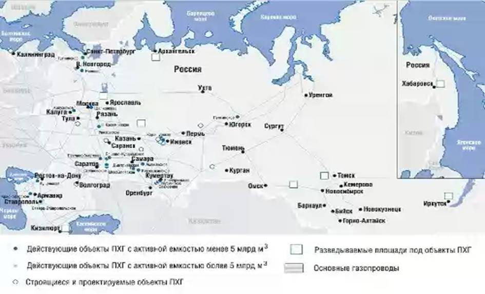 Так как Россия – одна из стран, которые имеют определенные климатические особенности и удаленность источников ресурсов от конечных потребителей, то ПХГ в государстве особенно ценятся. Не стоит забывать, что на территории РФ активно задействована «Единая система газоснабжения», не имеющая мировых аналогов, в которую входит как неотъемлемая часть комплекс ПХГ.