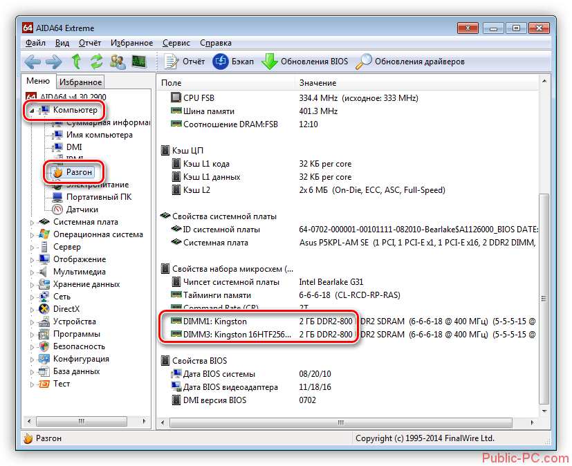 Итак, рассмотрим, как можно узнать с помощью AIDA64 частоту работы планок оперативной памяти: