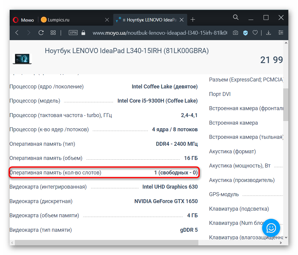 Информацию об оперативной памяти в ноутбуке узнать сложнее, чем в десктопном компьютере, поэтому не все методы, представленные в статье, будут одинаково эффективны. Например, не для каждой модели лэптопа удастся найти нужные сведения в сети. Тем не менее этот вариант все же удобнее и предпочтительнее других.