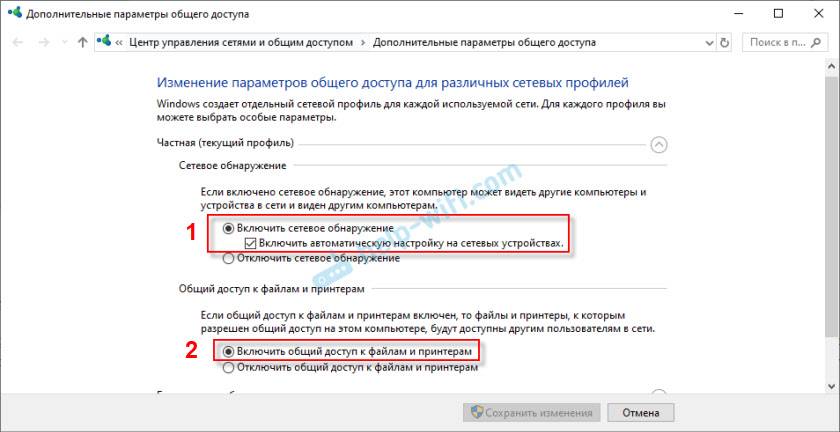 - включить сетевое обнаружение (включить автоматическую настройку на сетевых устройствах);
