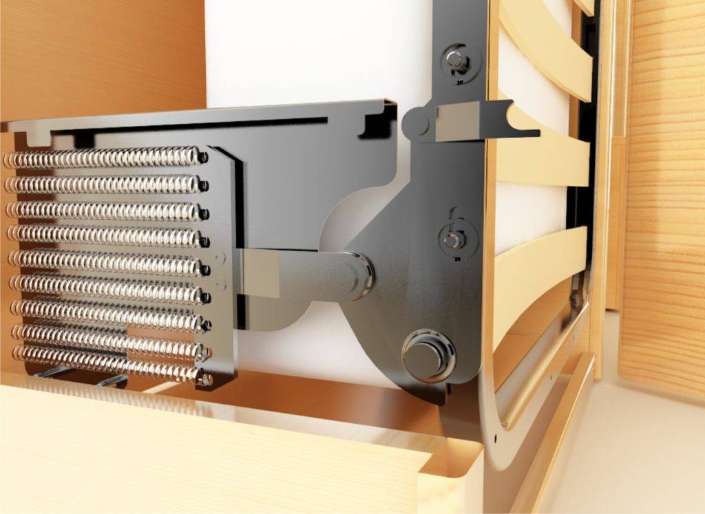Пружинному механизму свойственна проблема растягивания при частом использовании, да и металлический звон работающих пружин не из самых приятных.