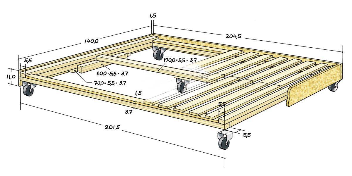 Без детальной схемы сделать качественную кровать своими руками значительно сложнее, чем при наличии таковой.
