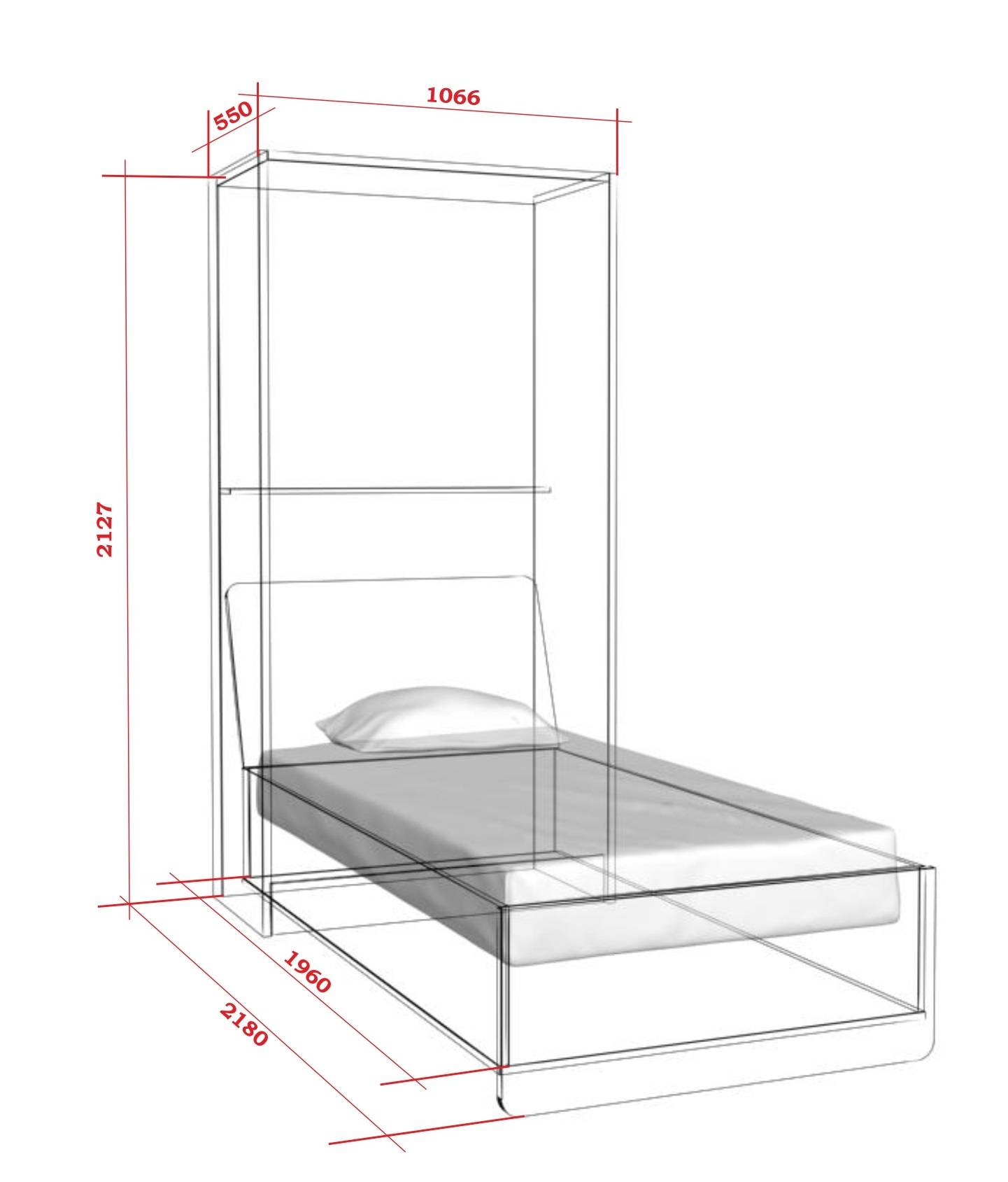 Для наполнения внутренности кровати вы можете использовать ортопедическое основание либо сделать из ЛДСП ребра жесткости, высотой не менее 10 мм и поверх них положить ДВП. Каждый механизм требует определенного зазора, добавьте его к размеру кровати и у вас получится внутренняя ширина шкафа, его высота будет равняться длине кровати плюс размер зазоров, чтобы кровать без проблем входила внутрь.