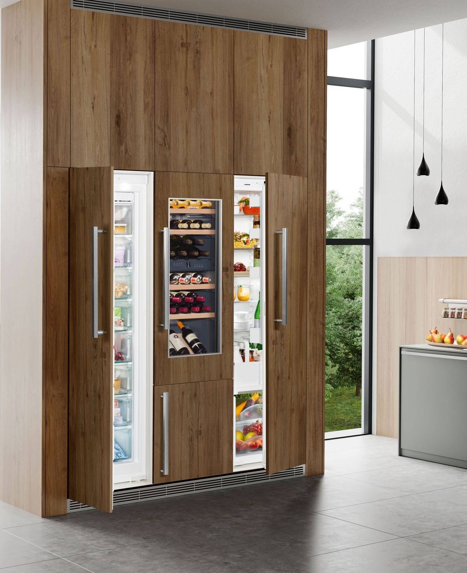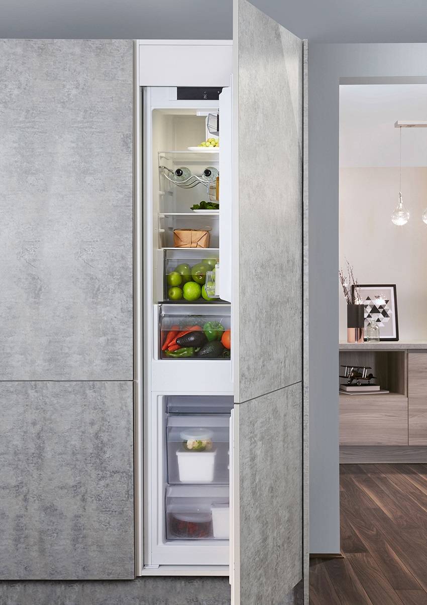 Встроенный холодильник должен легко открываться и закрываться с помощью дверки шкафа