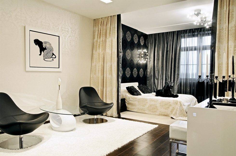 Гостиная-спальня в дизайне однокомнатной квартиры 50 кв. м