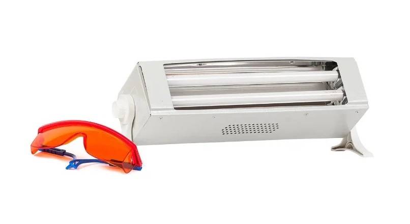 - Домашний солярий. Предназначен для домашнего использования. Имеет небольшое количество ультрафиолетовых ламп низкой мощности.