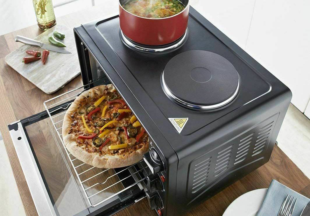 Это самое важное преимущество перед другими плитами. Помимо того, что в неё встроен мини-духовой шкаф, электродуховка также может иметь: варочную плиту (от одной до двух конфорок), режим микроволновой печи и функцию разморозки.