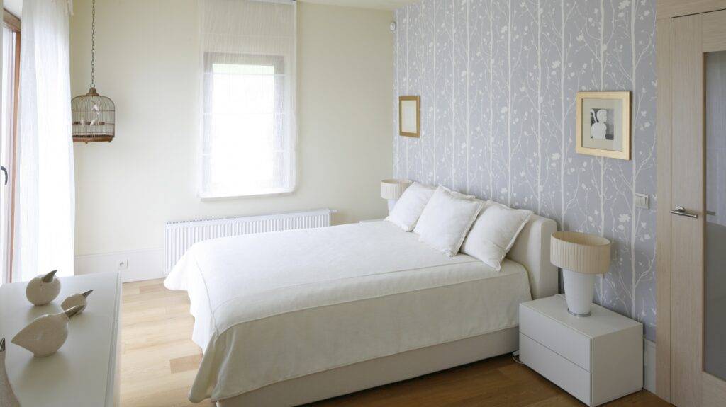 Что касается фактуры, то ее используют для компенсации мелких неровностей, а также для придания стенам большей выразительности. При этом не стоит выбирать варианты со слишком отчетливой текстурой, в маленькой спальне они смотрятся не лучшим образом.