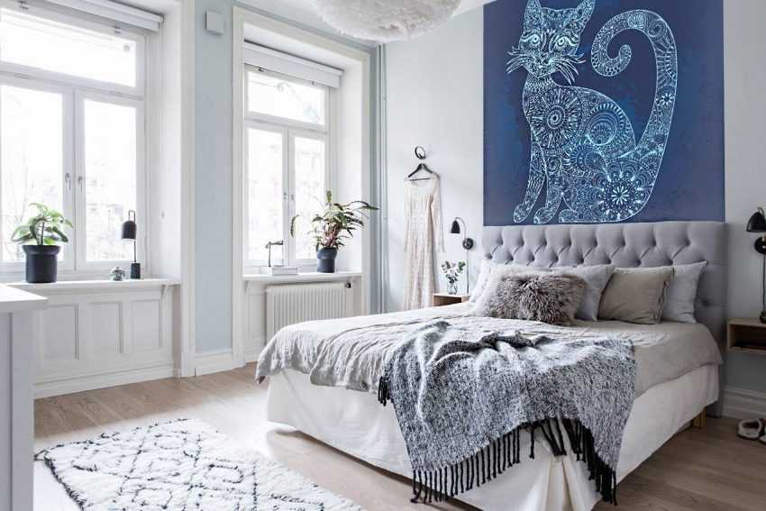 У светлой спальни больше возможностей, в ней можно использовать яркие элементы, однако основной тон лучше выбрать так же светлый, но холодный. Голубой, серый, белый, мятный. Эти оттенки будут освежать спальню, поддерживая баланс света.