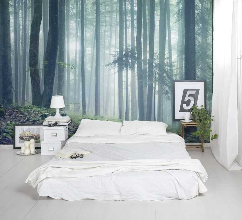 Самым популярным решением для расположения фотообоев в интерьере спальни является стена над кроватью. Но тут есть свои особенности в зависимости от формы стены – рассмотрим их ниже.