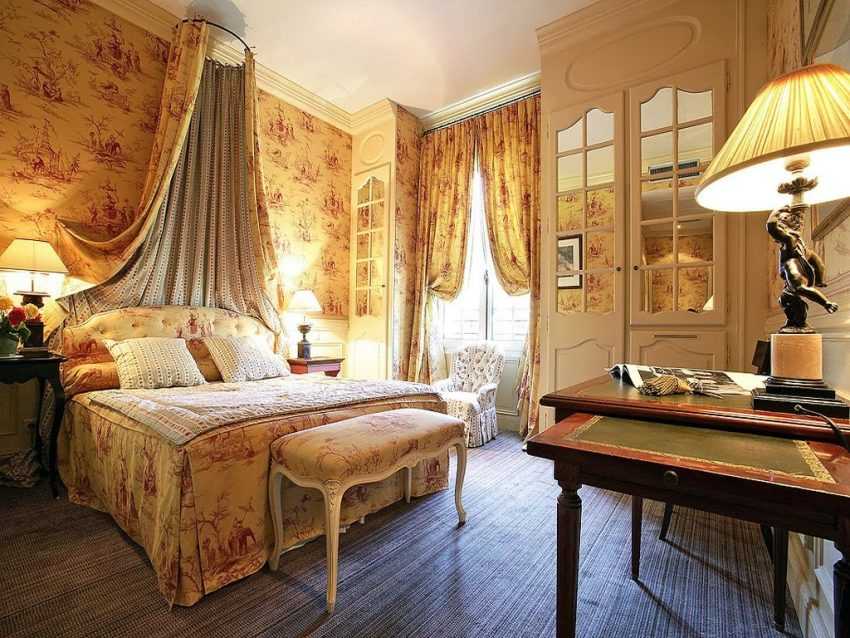Желательно приступать к планированию отделки на стадии приобретения мебели в такой интерьер, поскольку ассортимент обоев отличается большим разнообразием.
