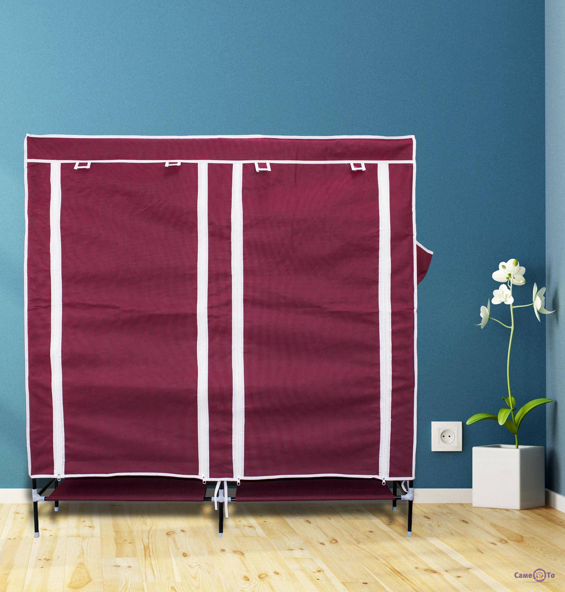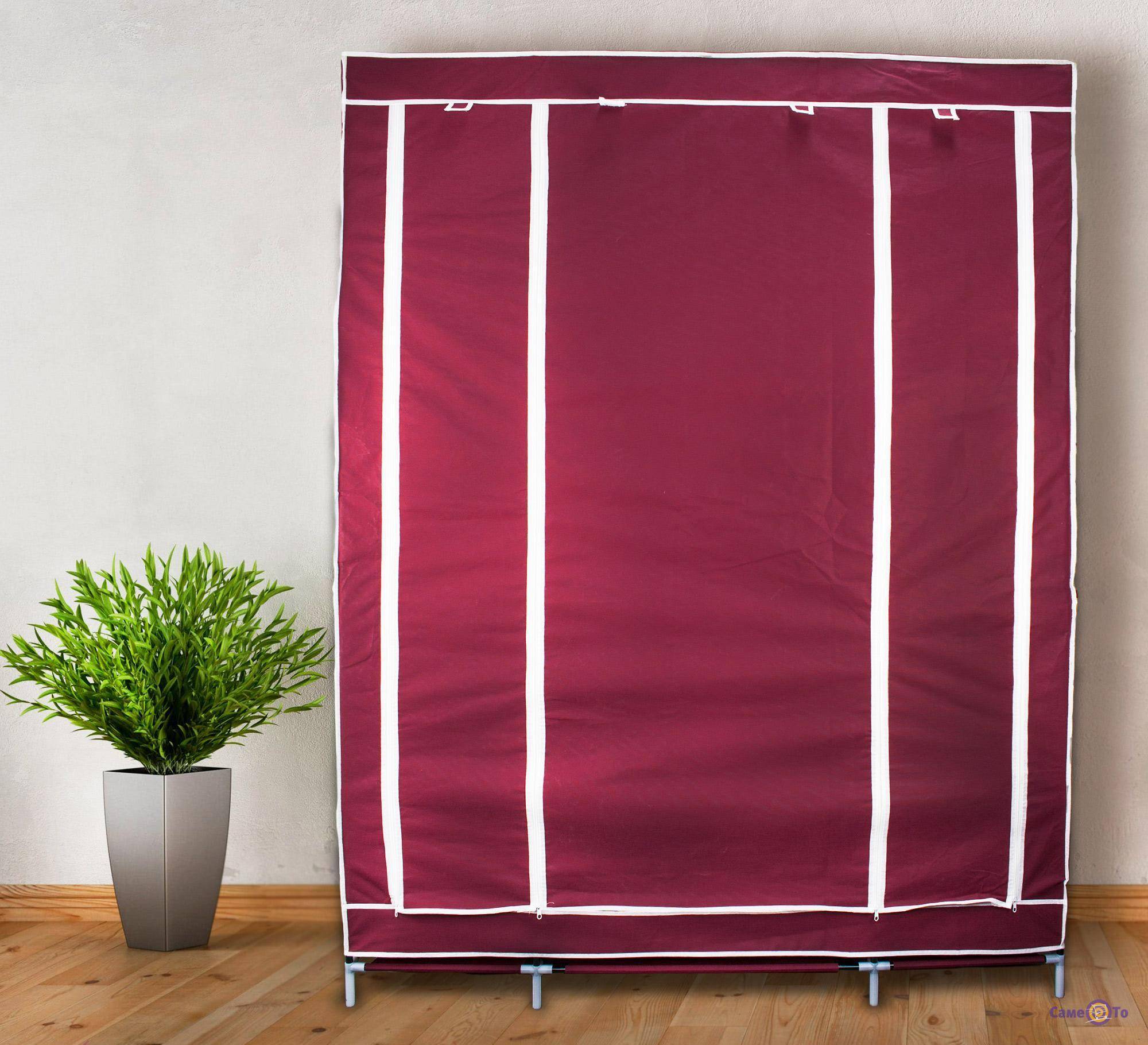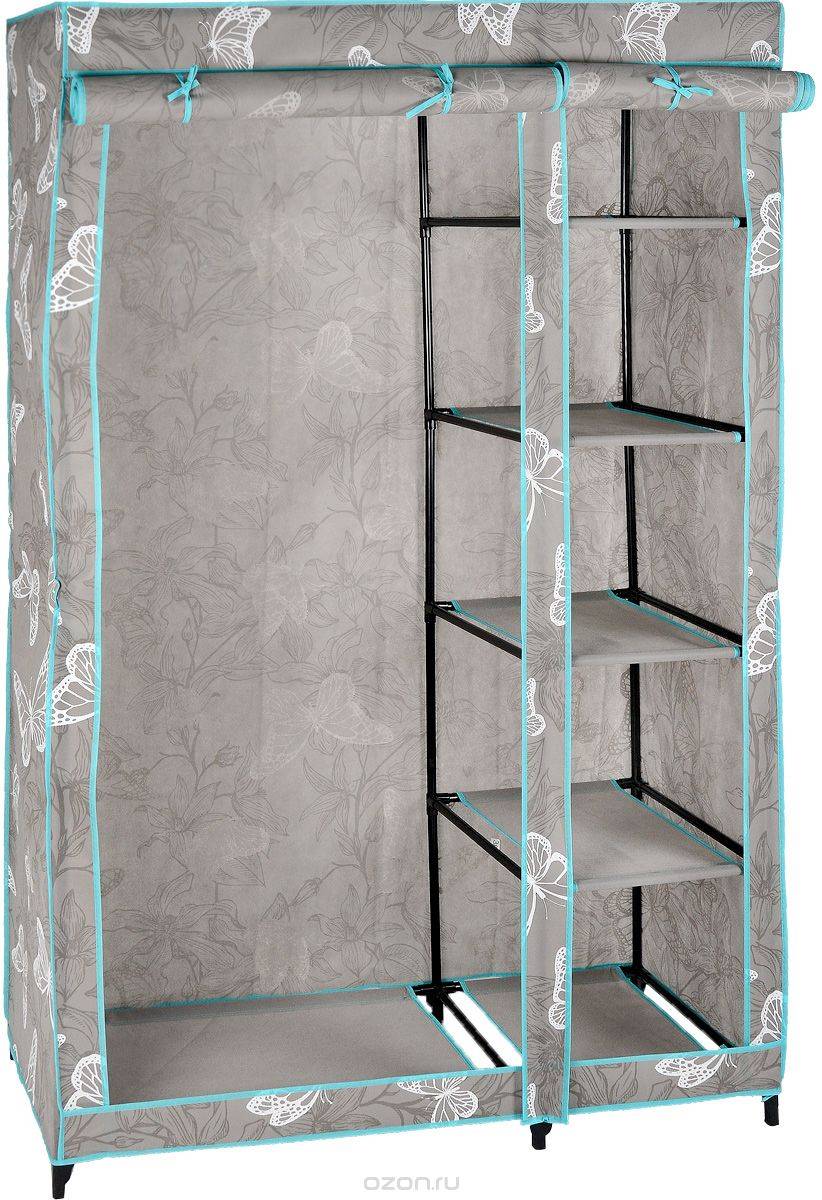 Перекладины для вешалок, основы полочек, ящиков изготавливаются из таких же трубок, что и каркас, либо трубок иного диаметра. Кроме того, этот предмет оснащен металлическими или пластиковыми элементами для закрывания – основой для шторки, липучками, молниями, крючками и так далее.