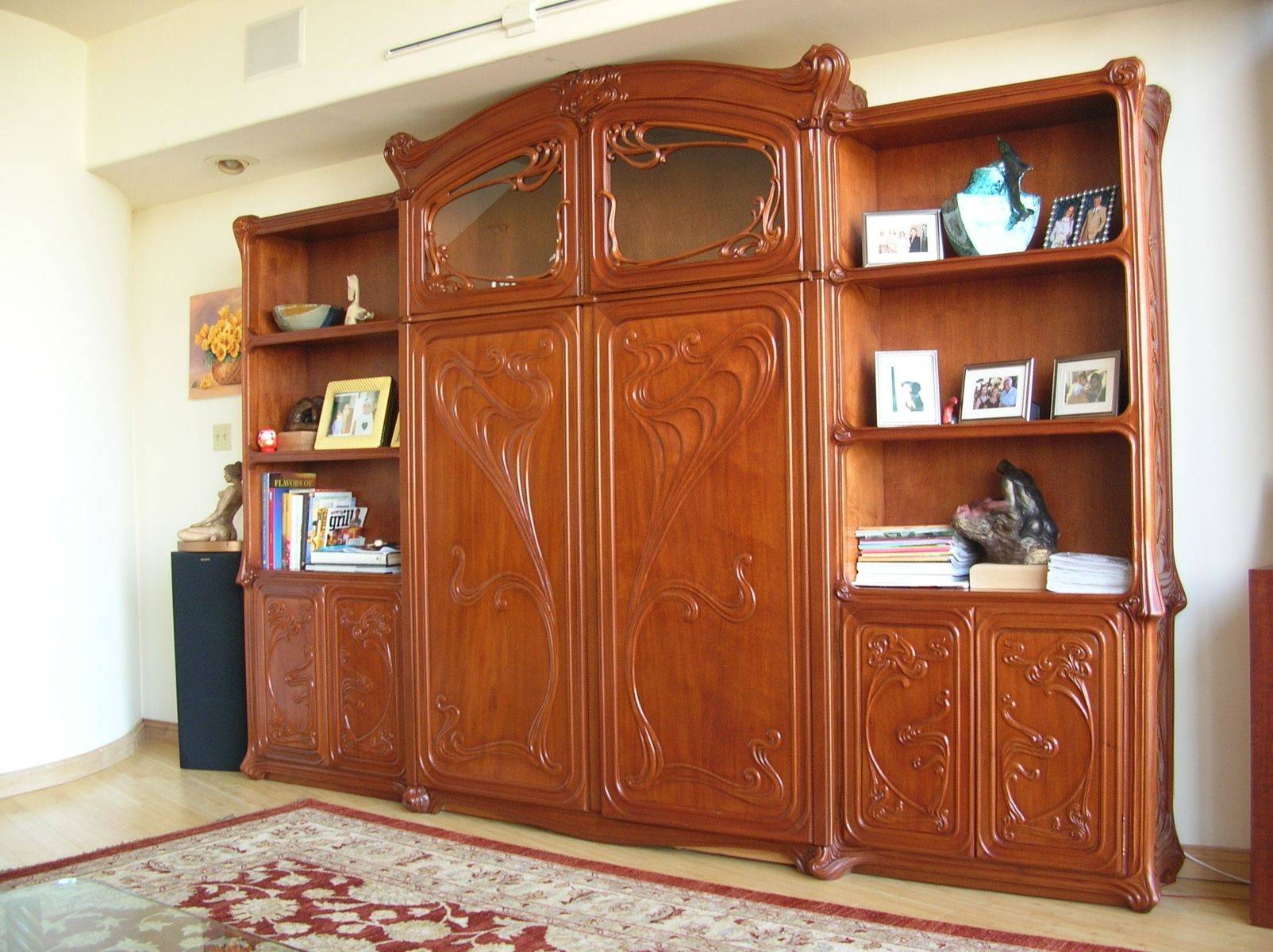 Распашные двери несколько сокращают свободное пространство перед конструкцией, однако пользуются большой популярностью у любителей мебели в классическом исполнении. Их главные достоинства – простота в использовании и надежность.