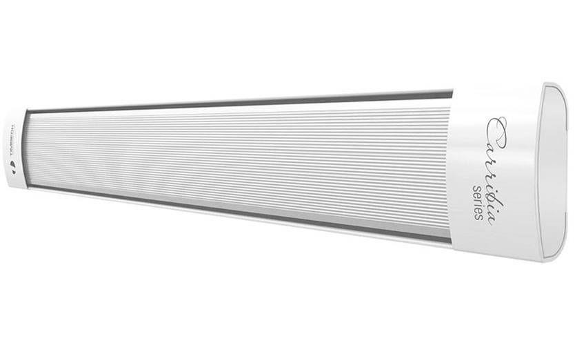Средний ценник 3000 рублей. В продаже только в сером цвете. Кварцевый обогреватель. Мощность обогрева 2000 Вт. Подходит для помещения площадью 20 кв.м. Потребляет 2000 Вт. Есть термостат. Корпус может поворачиваться. Система управления механическая. Монтироваться может на пол или на стену на максимальную высоту 3.5 м. В защитных функциях значится отключение при перегреве. Штатив для установки не входит в комплект поставки и покупается отдельно. Защищен от пыли и влаги по классу IP24.
