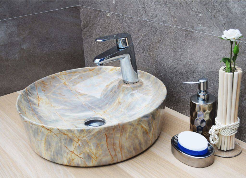 Самые дорогие раковины изготавливаются из мрамора. Это не только привлекательный, но и крепкий материал. Натуральный мрамор олицетворяет роскошь и изыск. Такая модель прекрасно впишется в элегантный классический декор. Минус – это высокая цена.