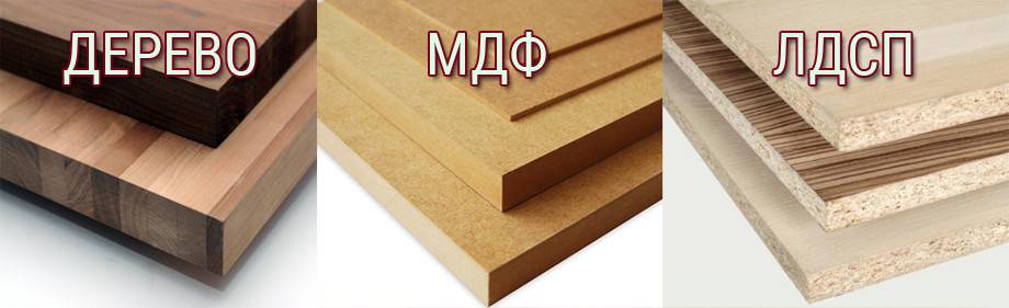 Чаще всего шкафы-купе изготавливаются из мелкодисперсных фракций и спрессованной древесной стружки. Оба типа сырья находятся в среднем ценовом сегменте и отличаются повышенной прочностью. ДСП и МДФ считают бюджетными материалами, из которых собирается корпусная мебель. В продаже встречаются шкафы из пород цельного дерева, но чаще их изготавливают на заказ.