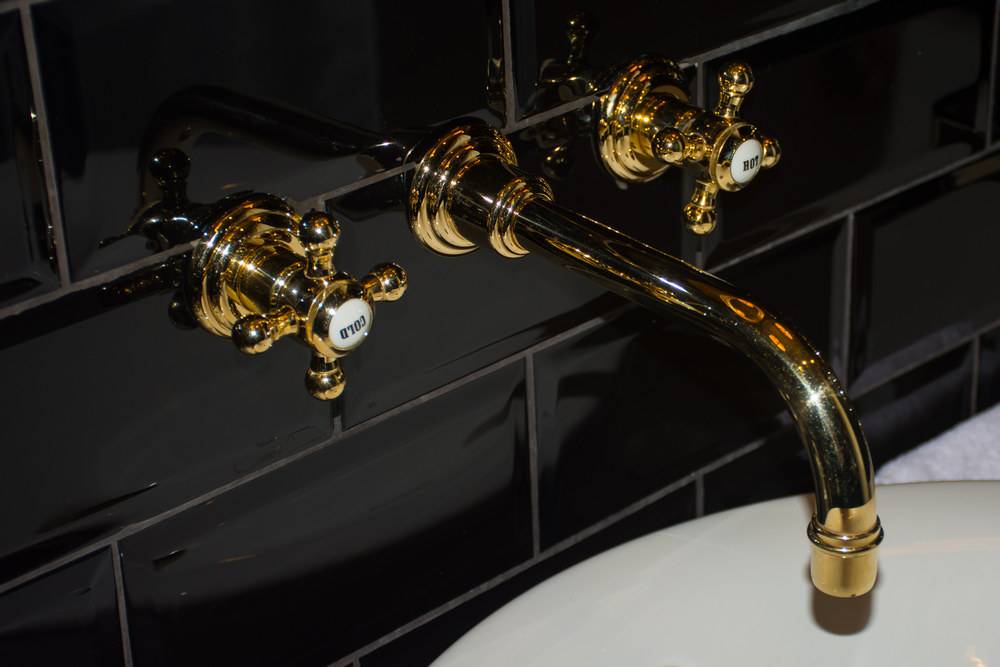 При монтаже на стену один кран может использоваться как для ванны, так и для умывальника (при условии, что они расположены рядом). Обычно на виду не остается никаких неэстетичных шлангов или труб – все скрыто отделкой стен.