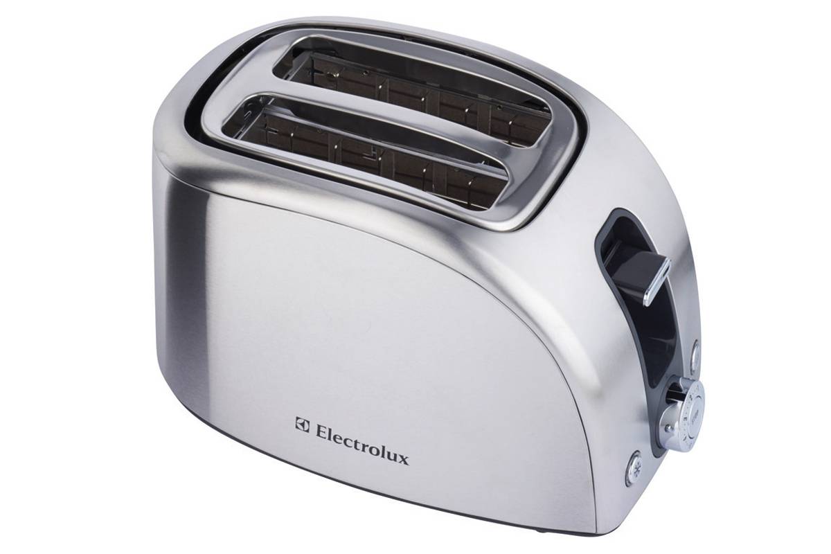 Если сравнить обзор тостера Electrolux EAT 7100 с представленными ранее моделями, то можно увидеть возможность установки степени обжарки из 7 температурных уровней. Мощность 980 Вт быстро подрумянивает сухарики. Есть кнопка прерывания приготовления, поддерживается функция размораживания, подогрева заранее приготовленных тостов.