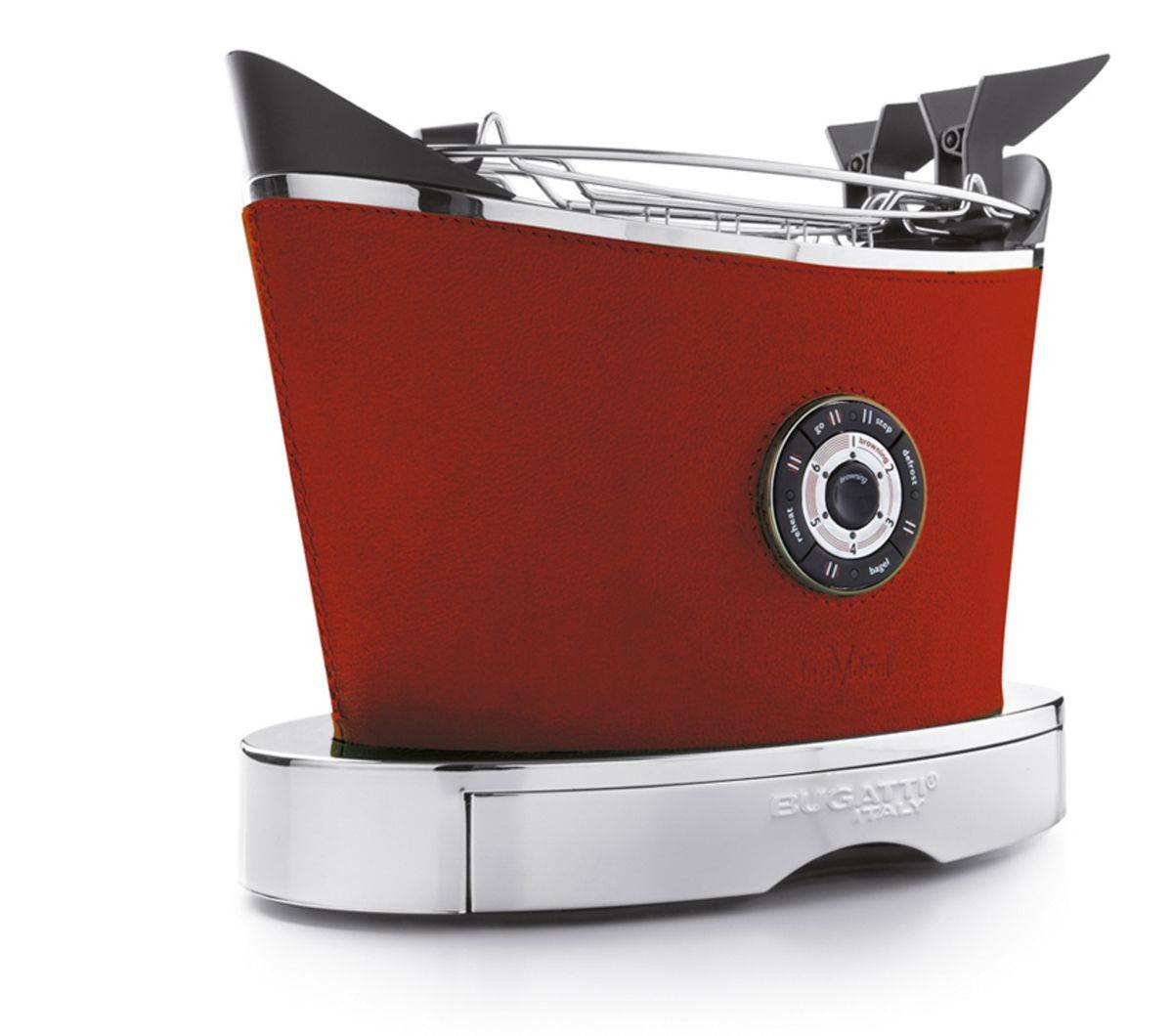 - Bugatti Volo – тостер с электронным управлением. Эта итальянская модель для дома красива и функциональна. На тостере можно не только подсушить хлеб или подогреть его, но и сделать сэндвичи на специальных решетках-зажимах.