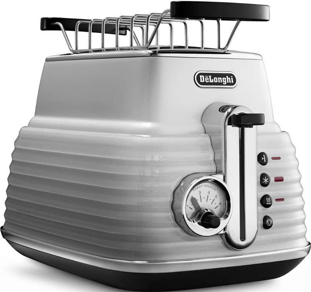 Компактное устройство из термостойкого пластика, белый цвет отлично впишется в любой интерьер кухни. Прибор гарантирует поджарку двух тостов. Дополнительно производитель позаботился о возможности подогреть булочку, круассан с помощью решётки. За такую функциональность потребуется заплатить немного.