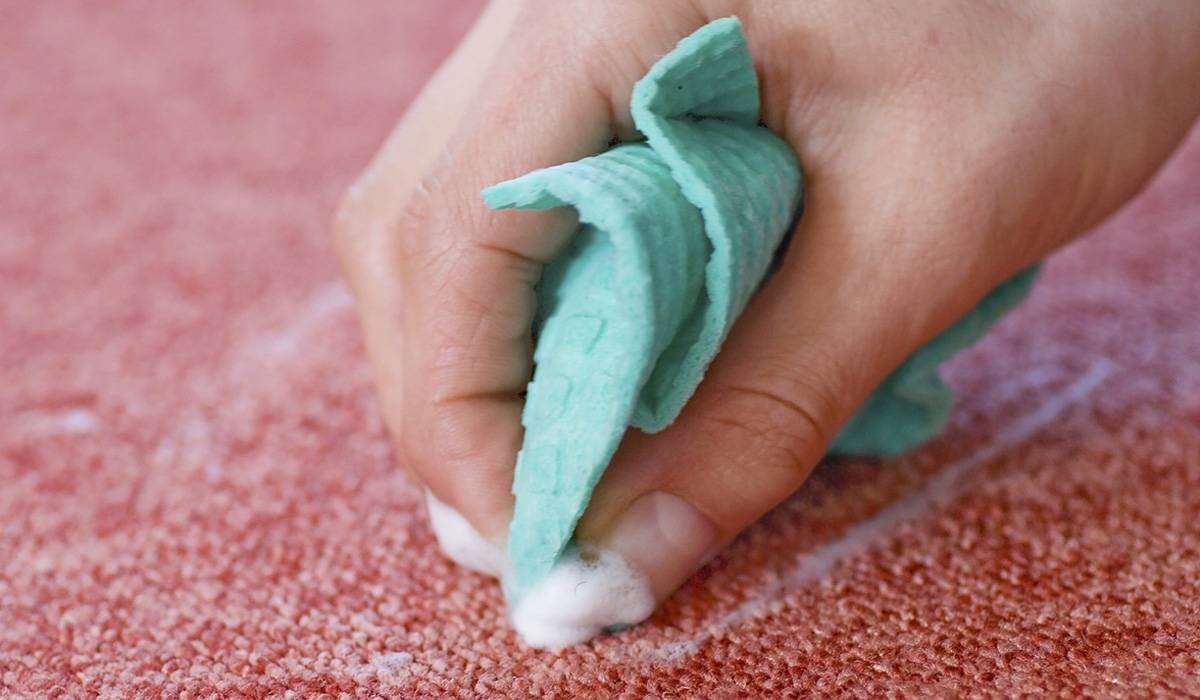 - Сначала следует покрыть пятно моющим средством и размазать старой зубной щёткой или губкой.
