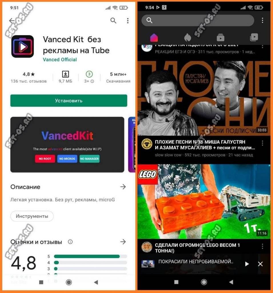 YouTube Vanced — это не совсем программа-блокировщик, это — альтернативный клиент для видеохостинга. Устанавливается через любой магазин приложений и бесплатно даёт множество полезных «плюшек» из Youtube Premium. Одна из таких функций — блокировка рекламы. Работает на всех современных Android-телефонах — Samsung, Xiaomi, Huawei и т.п.
