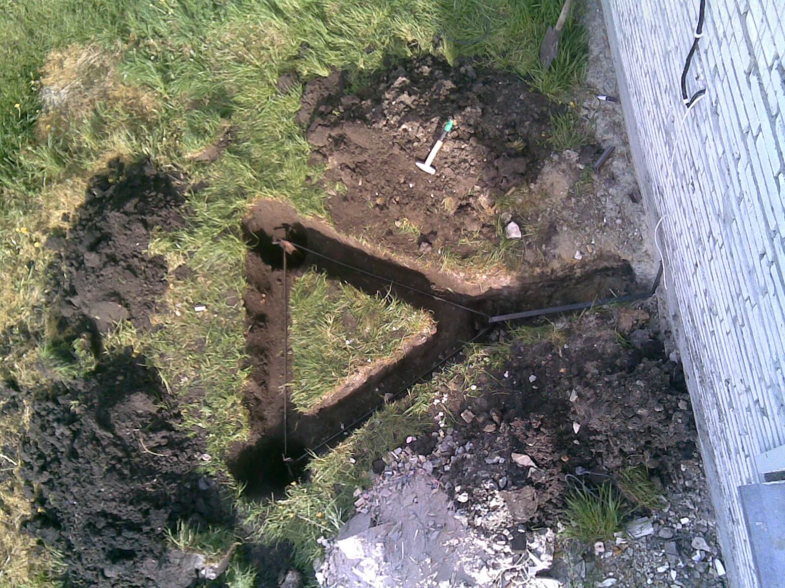 Заземление всей электрической домашней сети сделано, засыпаем яму и укладываем дерн на место, габариты обозначаем любым удобным способом.
