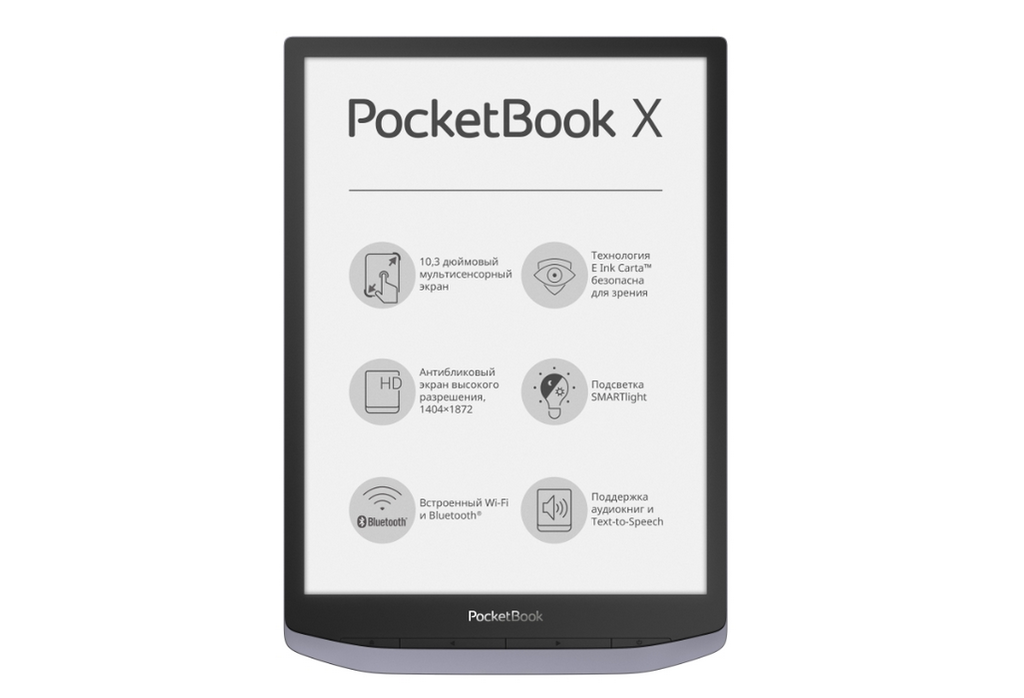 Если же вы все равно чего-то боитесь и нуждаетесь в максимально неубиваемом ридере, то следует смотреть на модели с диагональю 10.3 дюйма. Потому что все они поголовно оснащены экранами E Ink Carta Mobius с пластиковой подложкой. Подчеркну, что такие ридеры тоже не стоит бросать, бить и, скажем, использовать в качестве подставки под табуретную ножку. И, тем не менее, пластик в основе дисплейного модуля дает определенный дополнительный запас прочности. В линейке PocketBook уже есть один ридер с E Ink Carta Mobius – новейший 10.3-дюймовый PocketBook X. Обзор данной электронной книги можно прочитать, например, на Mobile-Review.