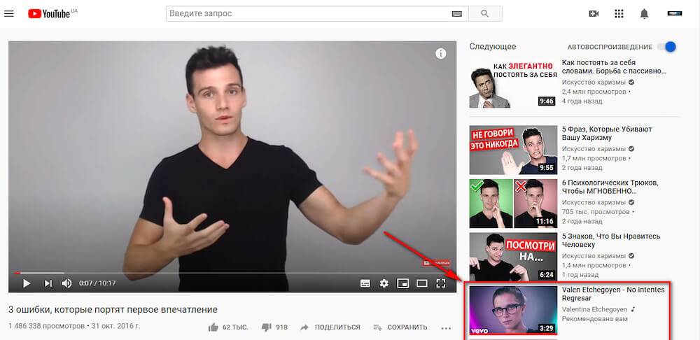2. Видео попадаются в правой колонке, когда открыт другой ролик.