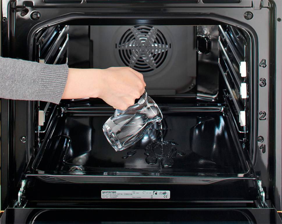 Гидролизная очистка – это воздействие пара на жировые наслоения на внутренних стенках духовки. Этот метод не является полноценным самоочищением, т. к. лишь размягчает грязь, и после этого ее все равно нужно удалять вручную. С помощью данного метода нельзя избавиться от застарелых загрязнений, поэтому процедуру необходимо осуществлять после каждого использования. Как очистить духовку посредством гидролиза?