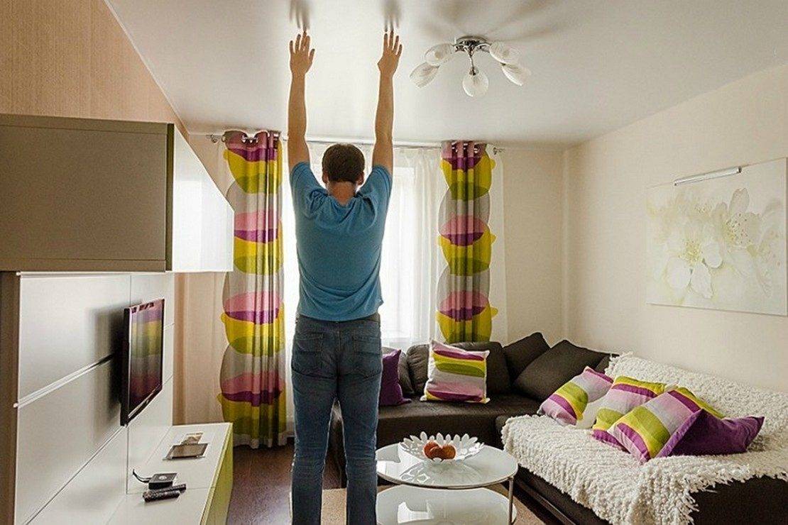 Некоторые определяют нужную высоту так: выбирают самого высокого члена семьи и делают потолок на 30 см. выше, чем его рост на вытянутые руки.