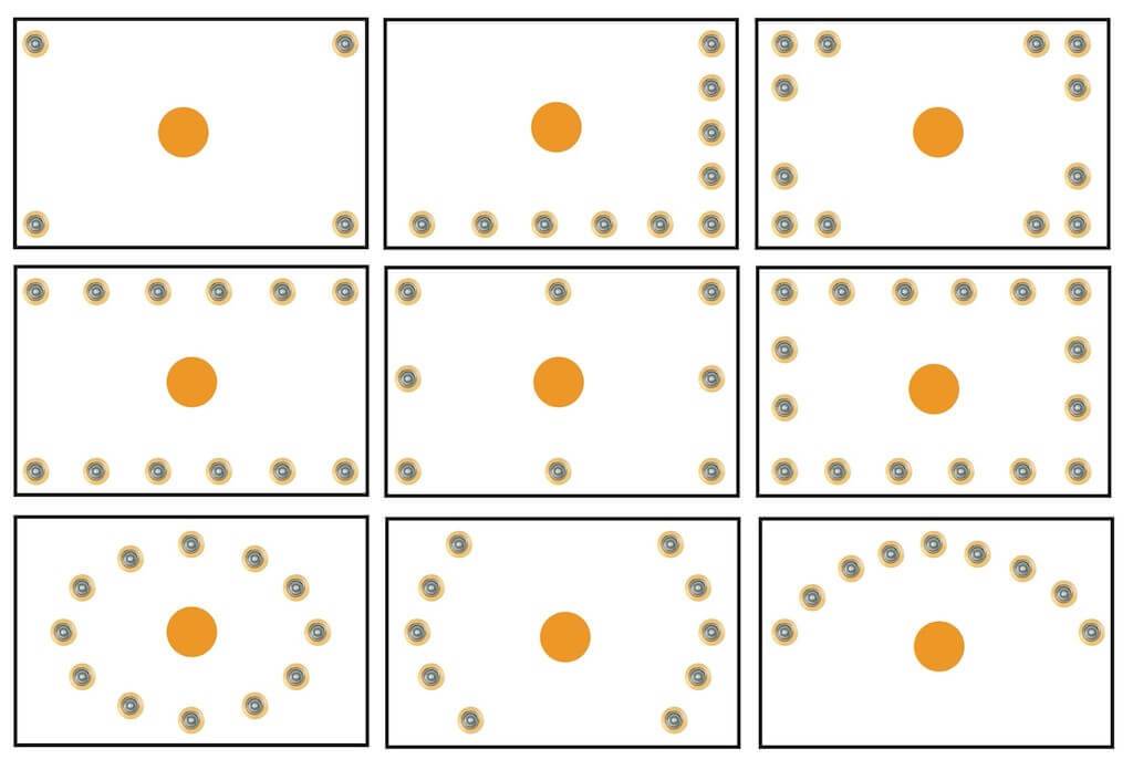 Если требуется установить большое количество однотипных светильников, проще изготовить трафарет, с помощью которого на потолке будут отмечаться места будущих отверстий под крепления.