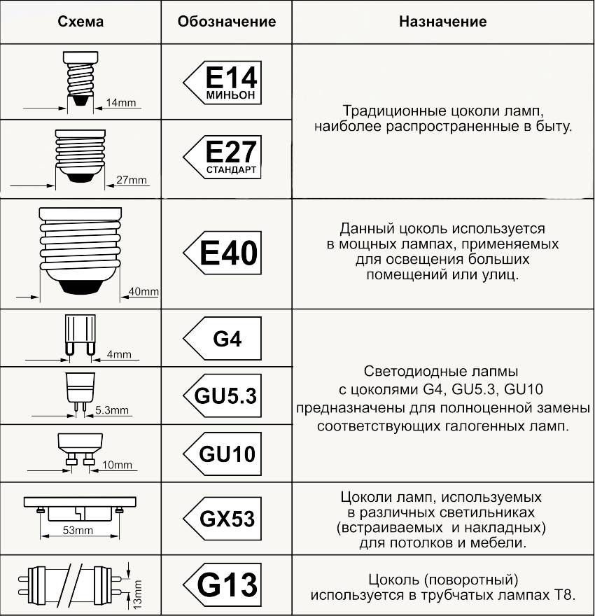 Светодиодные лампы выпускаются во всех распространенных видах цоколей