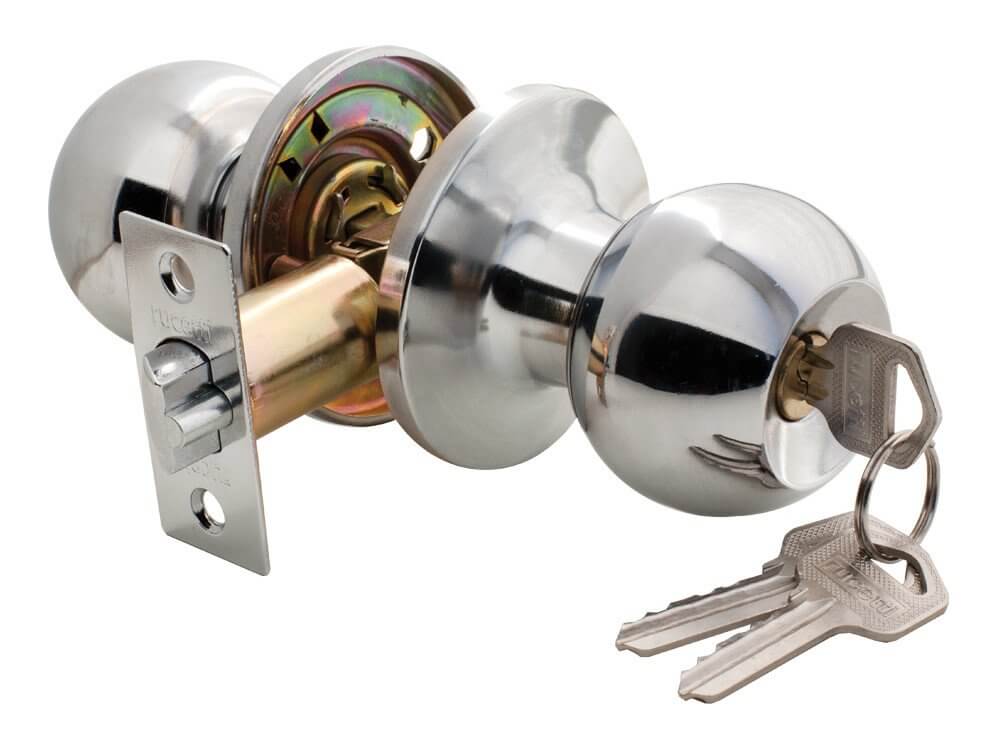 - Врезные запоры с ключом. Они состоят из цилиндра, ручки и замкового блока. Открыть помещение можно только ключом, форма которого совпадает с впадинами в механизме запора.