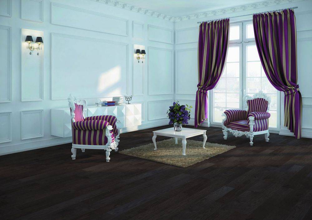 Темный деревянный пол создает великолепные возможности размещения, к нему подходит подавляющее большинство цветов. Особенно хорошо такой ламинат будет сочетаться с: